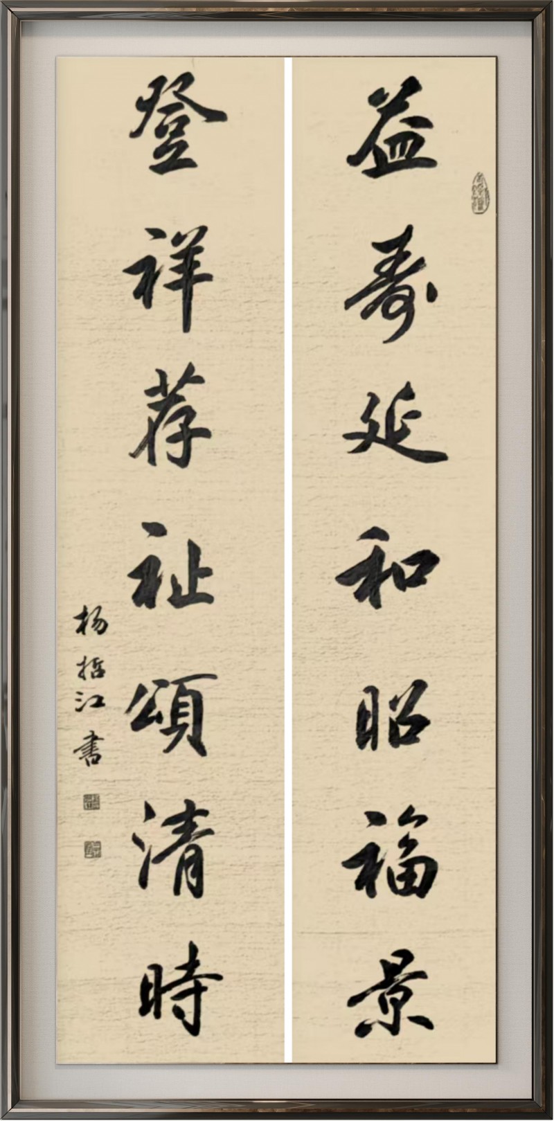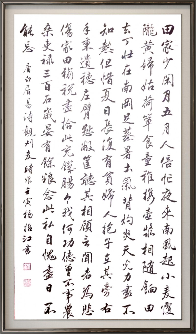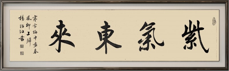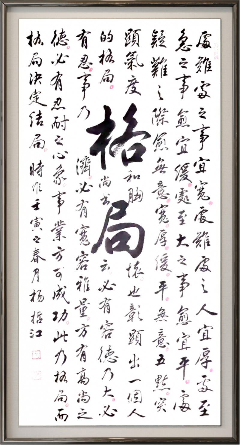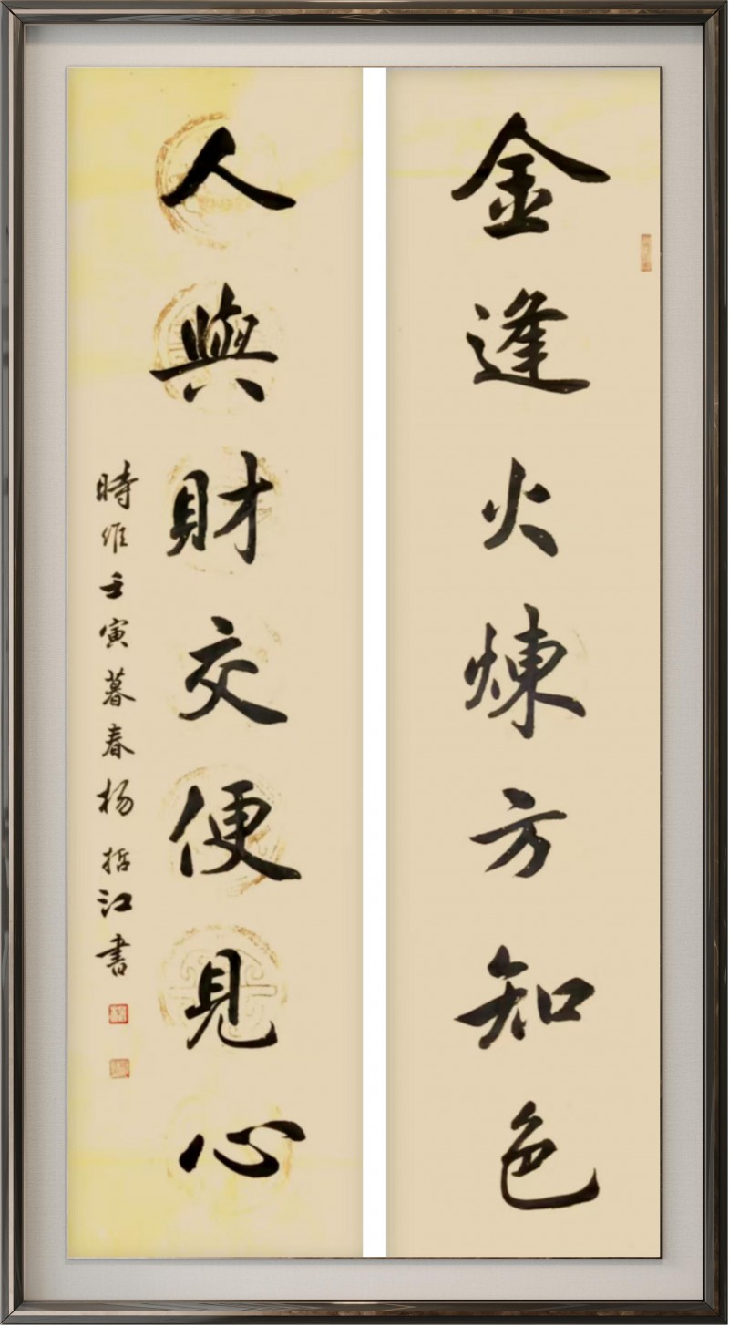 杨哲江先生幼承庭训,随父学书,深耕笔墨数十载,博采众长、融会贯通。他先临欧、颜、柳之端庄,再习赵、米、王之风韵,更得欧阳中石、旭宇、邹德忠、卢中南等书法前辈指教,中石先生盛赞其作品“布局严谨,笔法流畅,书卷气很浓”,并勉励其在传承中创新。