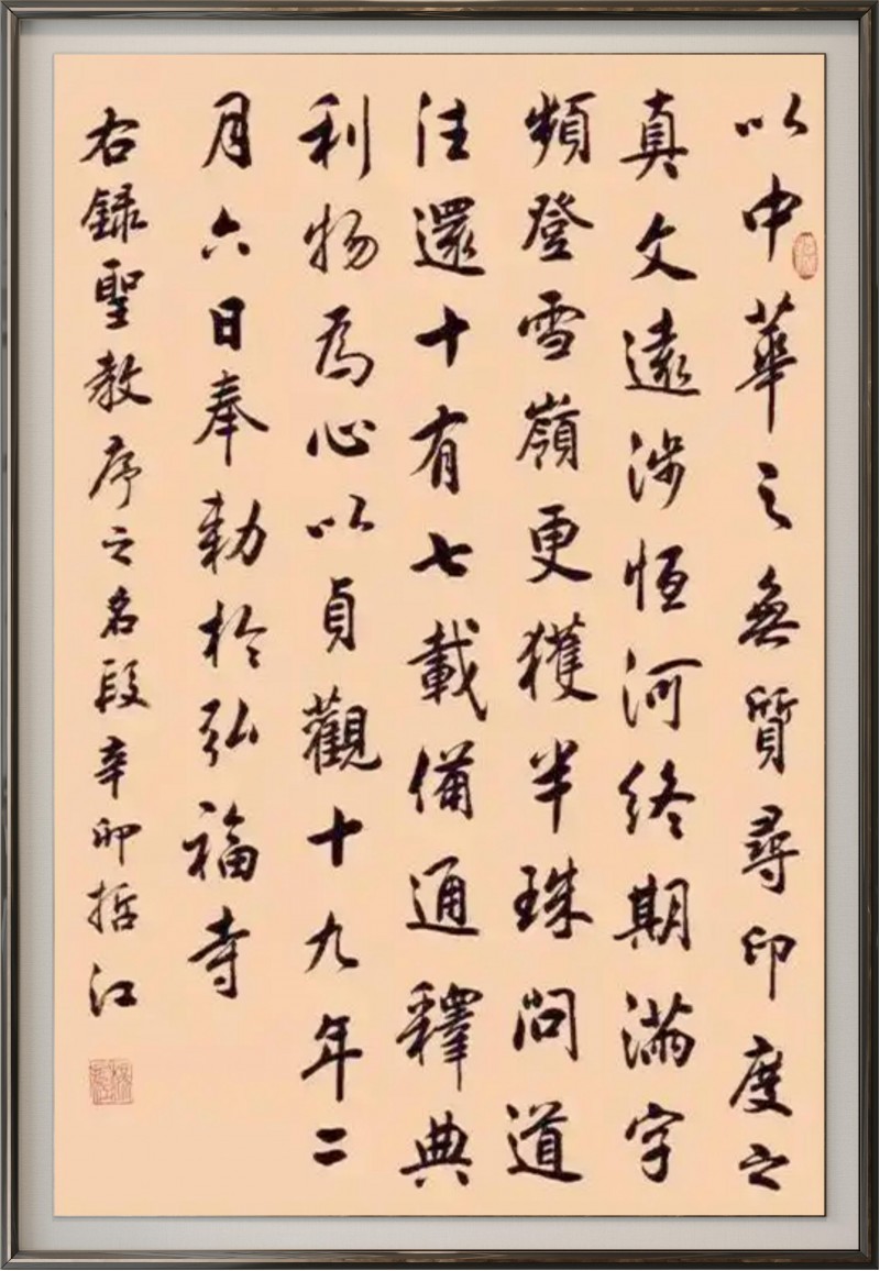 多年来,工作之余,他遍历名山大川、拜读碑林木刻,集大家所长,形成用笔流畅、点画遒劲、结构严谨的独特风格,行楷舒朗秀逸,榜书雄浑典雅,题跋中更藏治学之道与人生感悟,尽显中华书法的深邃魅力。身为文化传承的践行者,先生不仅精研书艺,更致力于书法文化的普及与传播。他深耕教育一线,推动书画艺术“六进”活动,培育大批书法人才;更主编《中国书法大字典》等多部典籍,举办个人书法作品展,让书法艺术走进大众;走出国门,其作品被多国友人和文化机构收藏,多次参与中外文化交流活动,并应邀参加中尼建交70周年庆典,向尼泊尔、柬埔寨、法国等15个国家的外交使杰赠送作品,将中国书法推向世界。先生德艺双馨,屡获殊荣,用一生践行初心,以翰墨书写民族华章,无愧于中国文化事业贡献人物的称号。