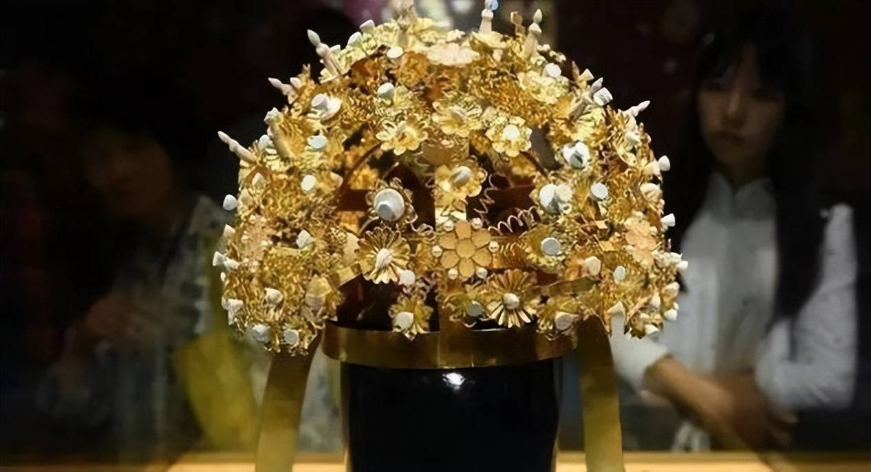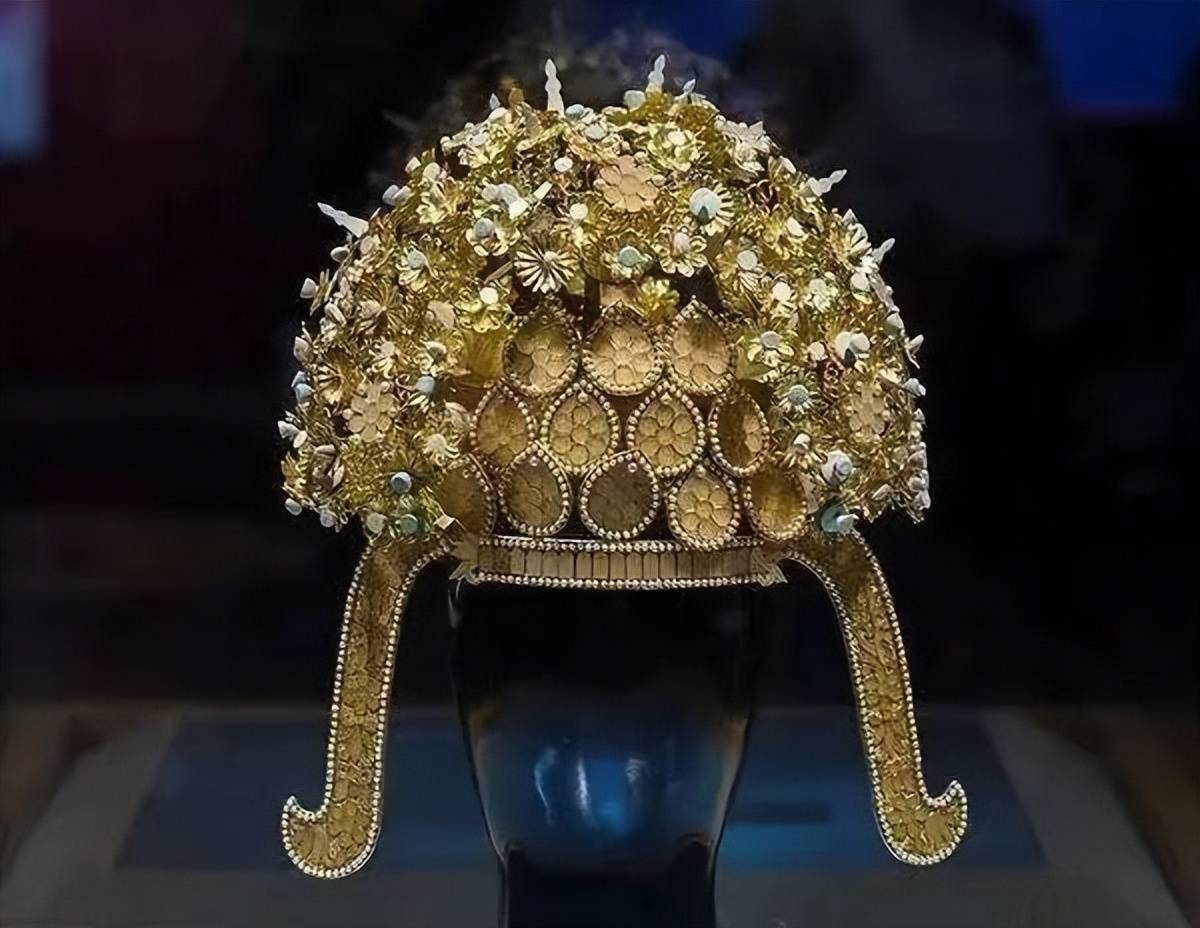 萧皇后的花树冠上共有十三个黄金和白银制成的花树,这也是当时女性最高等级的象征。唐代的贵妇们常穿着华丽的衣物,佩戴花树冠,不过根据不同的身份,花树的数量也会有所差异。