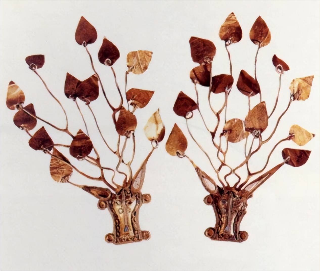 随着中国与西域外族的交流,唐人们的服饰也开始融入胡风,金银制作的簪钗、器皿也开始受到外国风格的影响。到了晚唐时期,由于国力的衰弱,贵族们已经无法承受昂贵的花树冠,于是以金银制作的花钗成为了显示身份的替代品。