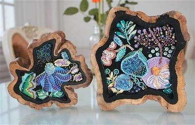 金奕奕珠绣作品《绿岛》,张红娟指导。 金奕奕供图
