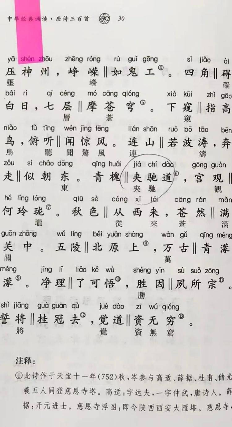 该版《唐诗三百首》是“中华经典诵读”丛书之一种,2012年第1次印刷。当时听取一线老师根据教学要求所提出的建议,我们在原诗的正文下面标出了对应的繁体字。因为需要重新倒版和简繁转换,致使出现了一些讹误,后来每次重印时虽也做过零星修订,但都不彻底。盛大林先生指出的“夹”误作“涛”,系改稿时全书替换操作失误所致;“里”误作“裏”、“大历”误作“大歷”等,系简繁直接转换造成。